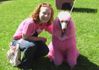 I've noticed at Cherry Blossom events this year that Lacie the pink poodle, seen at right, is always a crowd favorite. And it's not just the young who are enamored with Lacie and her brightly colored hair - she has quite a following among all generations. I think she might even be more of a Cherry Blossom celebrity than founder Carolyn Crayton herself.